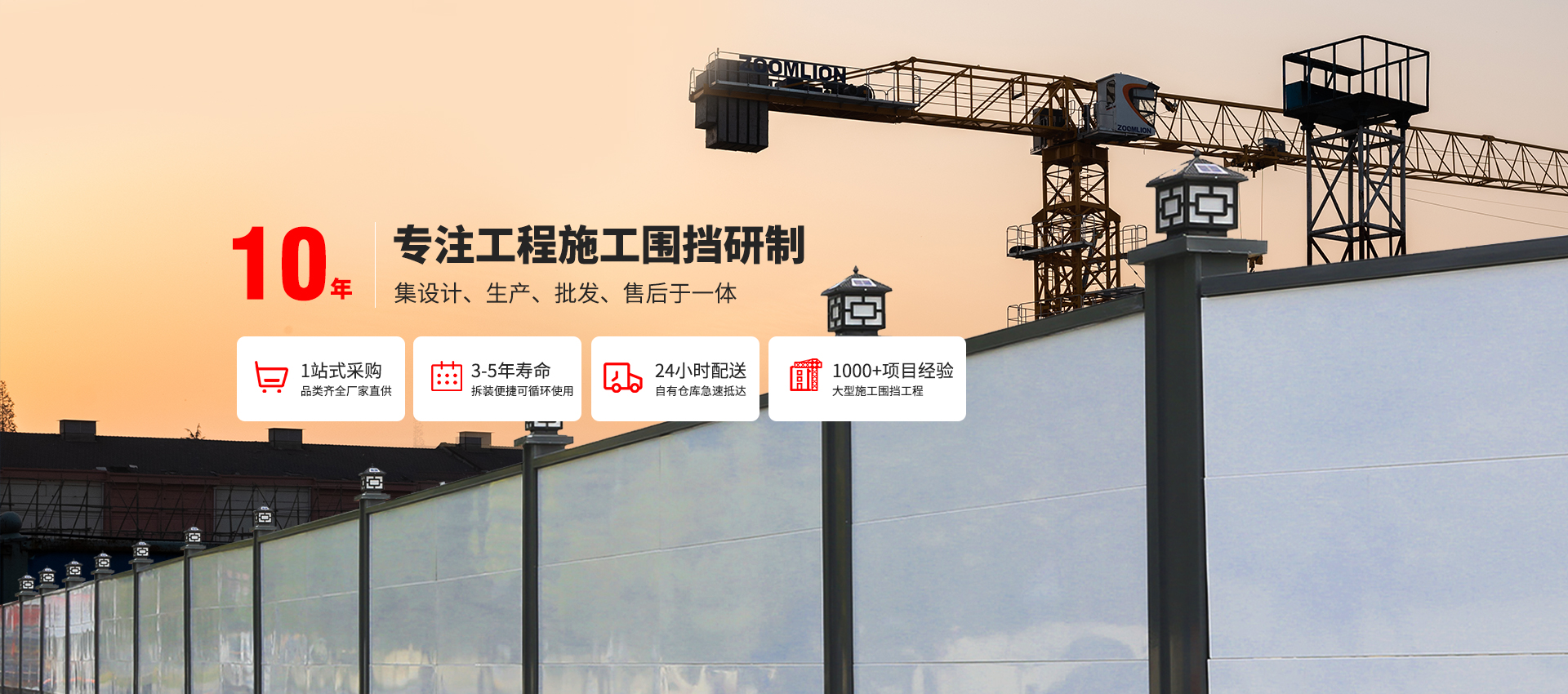 旭東施工圍擋,卡槽式安裝、拆裝損耗低,扣板式設計、可疊放、便于運輸和儲存,可多次重復使用,符合國家環(huán)保政策。
